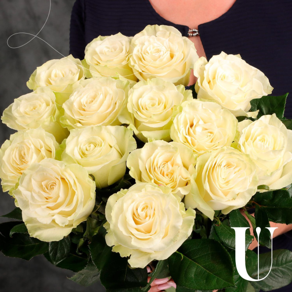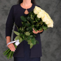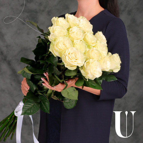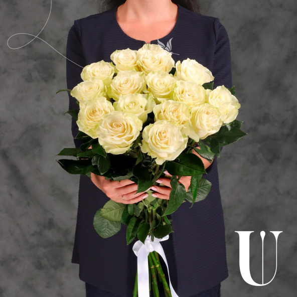 Стильный монобукет из 25 белых роз сорта Мондиаль
