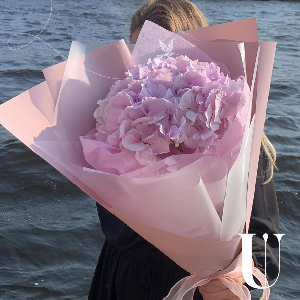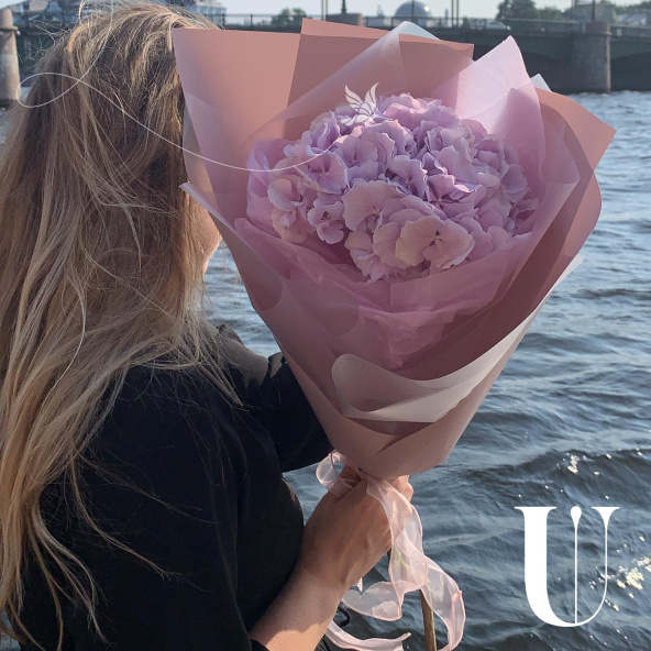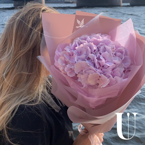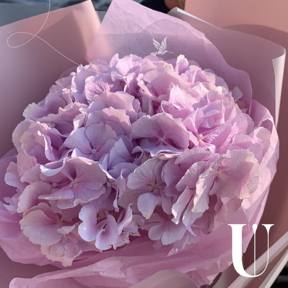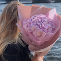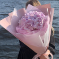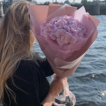 Монобукет из кустовых хризантем сорта Балтика в упаковке