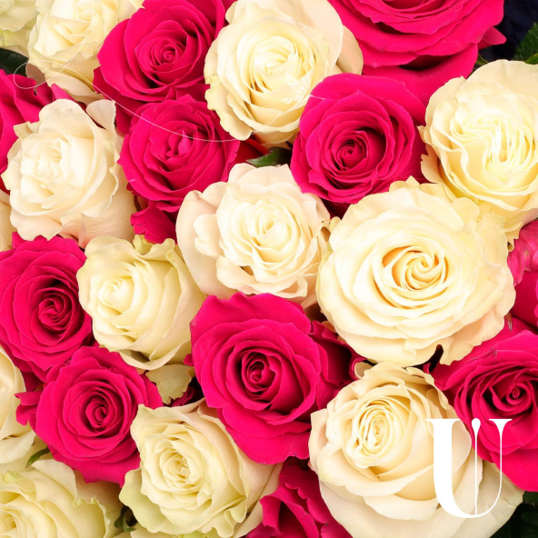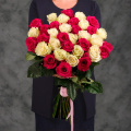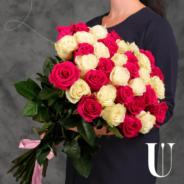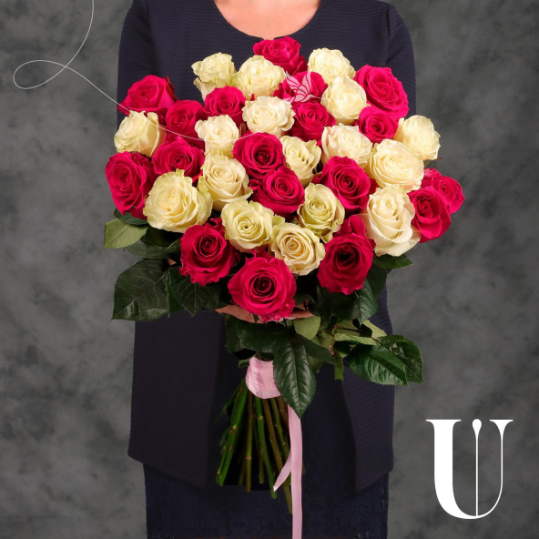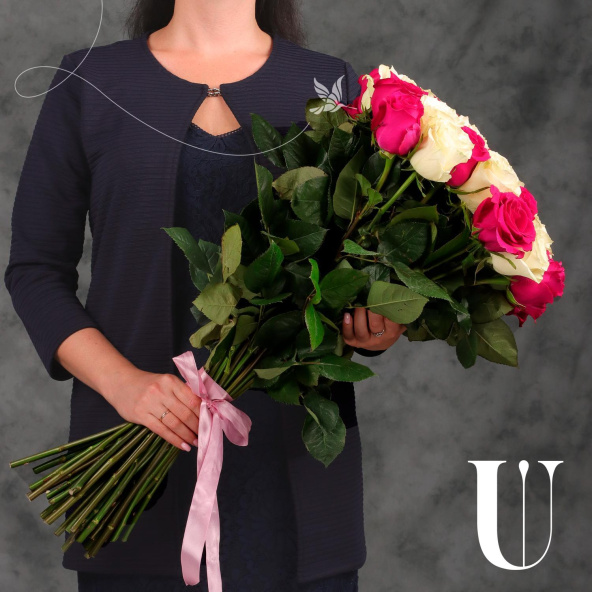 Букет "31 белая и розовая Эквадорская роза 70 см"