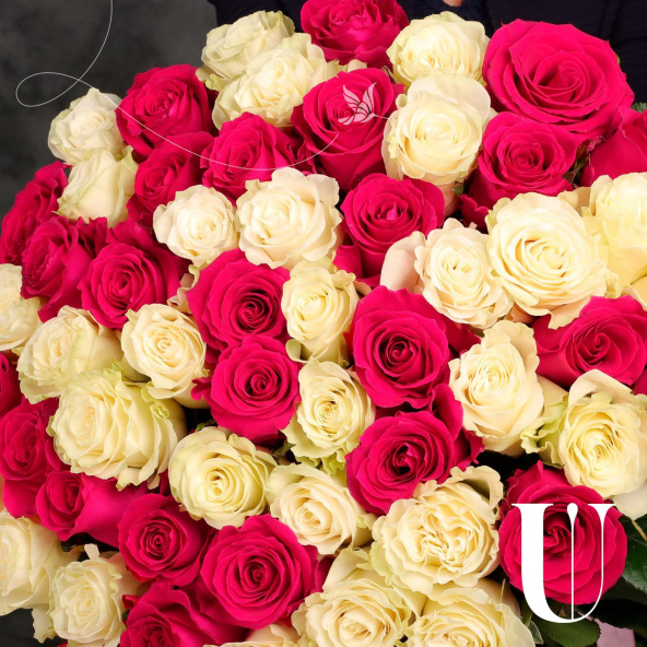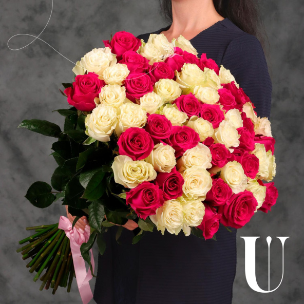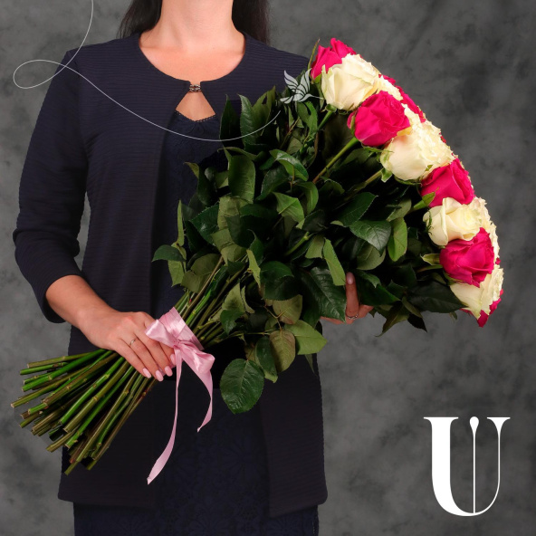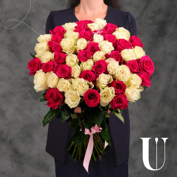 Букет "55 белых и розовых Эквадорских роз 70 см"