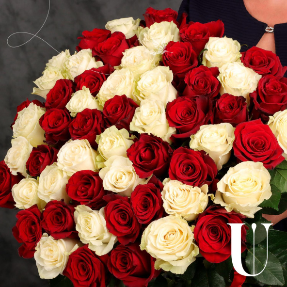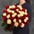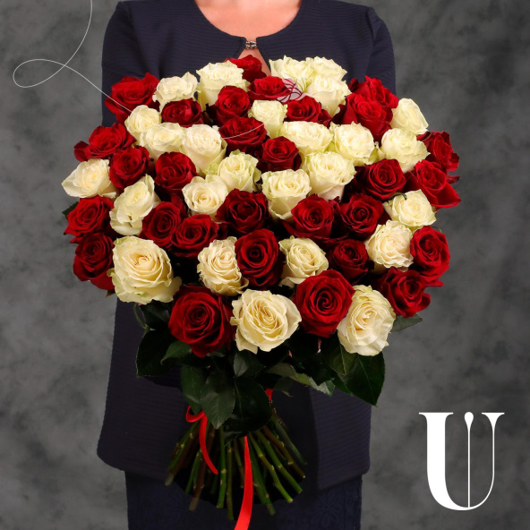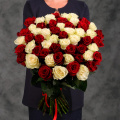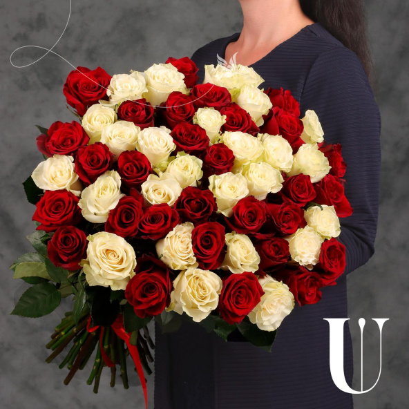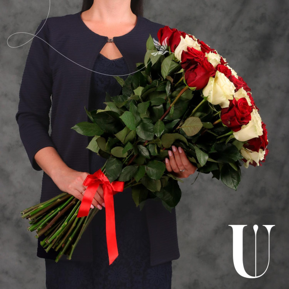 Букет "55 красных и белых Эквадорских роз 70 см"
