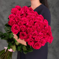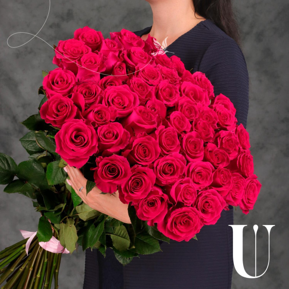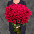 Букет из 55 роз сорта Ред Наоми в упаковке