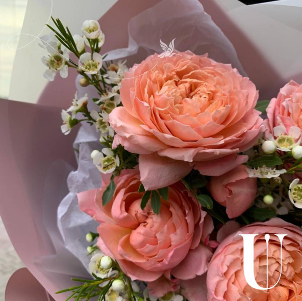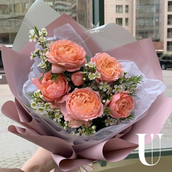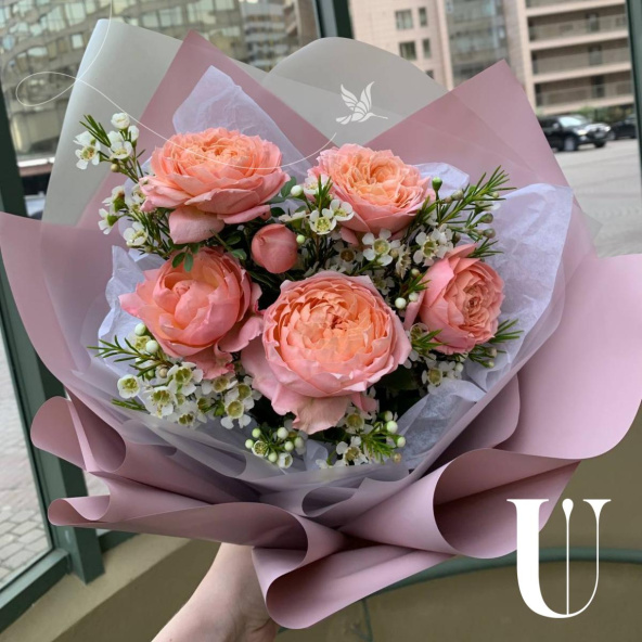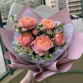 Букет из 5 роз Кантри Блюз в розовой упаковке