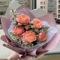 Монобукет из 7 роз сорта Капучино и эвкалипта в дизайнерской упаковке