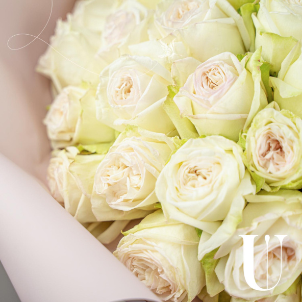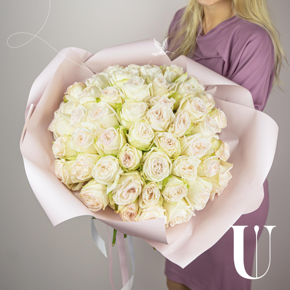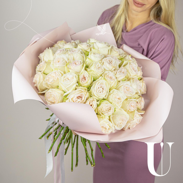 - Роза Вайт Охара, Эквадор, бело-розовая, пионовидная 50 см. - 51 шт