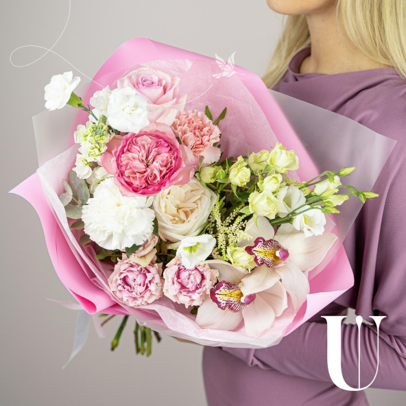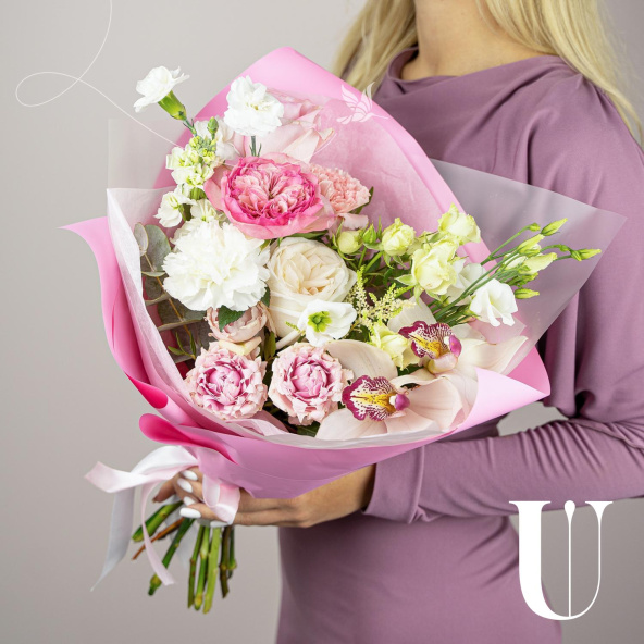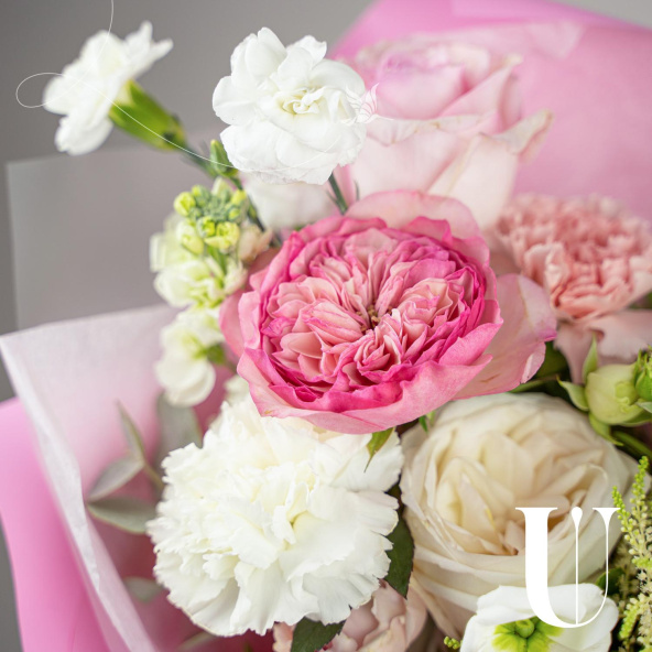 - Роза Вайт Охара, Эквадор, бело-розовая, пионовидная 50 см. - 1 шт