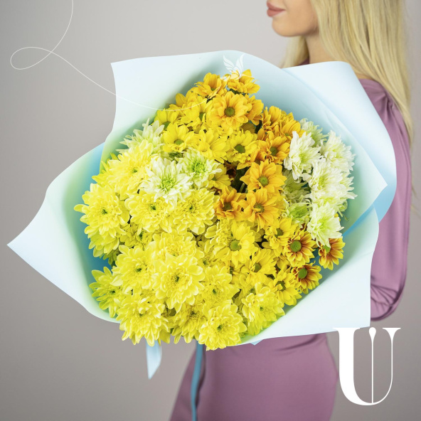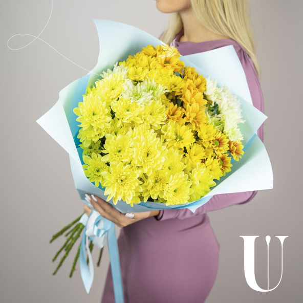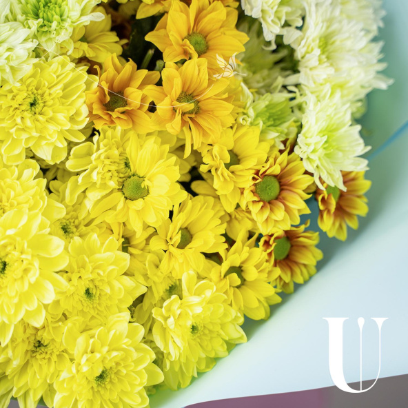 - Хризантема кустовая, Евро, желтая - 7 шт