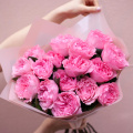 Букет из 15 пионовидных роз сорта Вайт Охара в упаковке