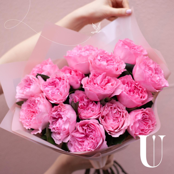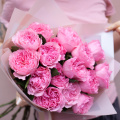 Садовые пионовидные нежные розы Майра в стильной упаковке
