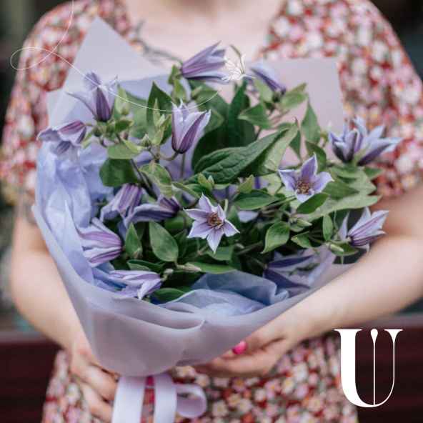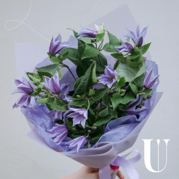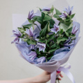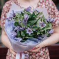 Букет из кустовых пионовидных роз сорта Джульетта в дизайнерской упаковке