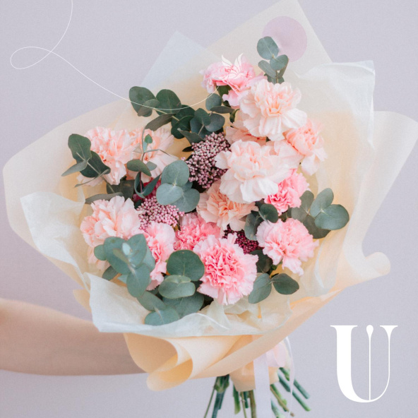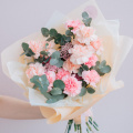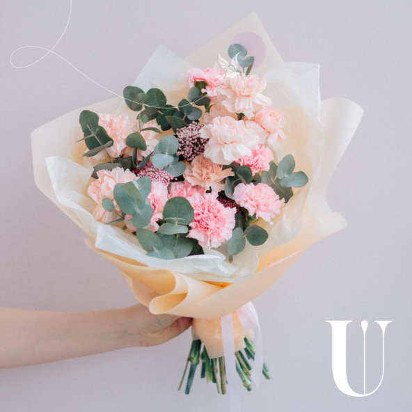 Монобукет из нежных и розовых диантусов в белой упаковке