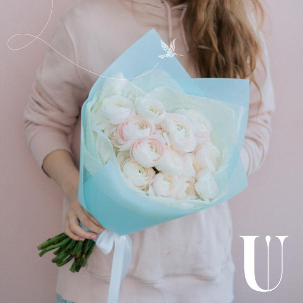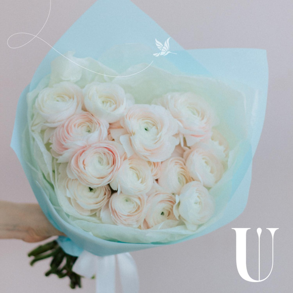 Букет из нежных стойких розово-кремовых ранункулюсов Ханои
