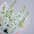 Букет из белых кустовых хризантем и розовых диантусов в упаковке