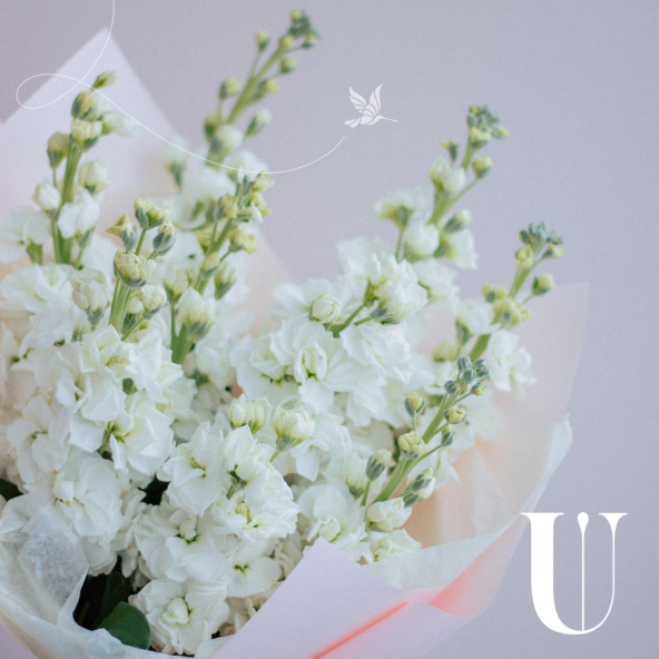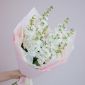 Монобукет из белых ирисов и ромашки в стильной упаковке