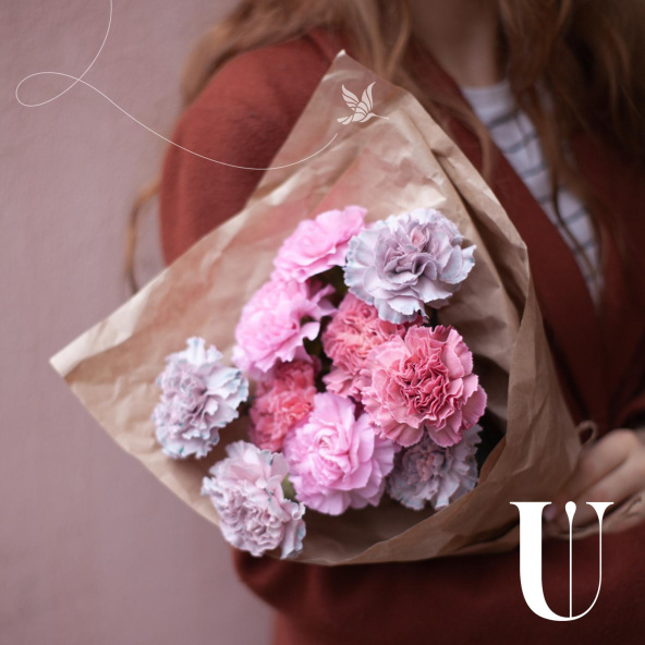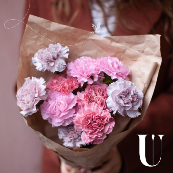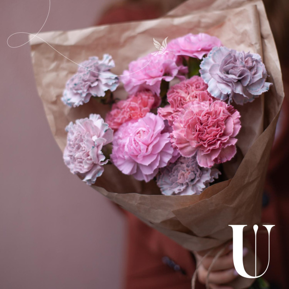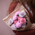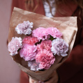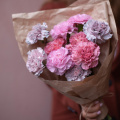 Монобукет из розовых гвоздик в упаковке