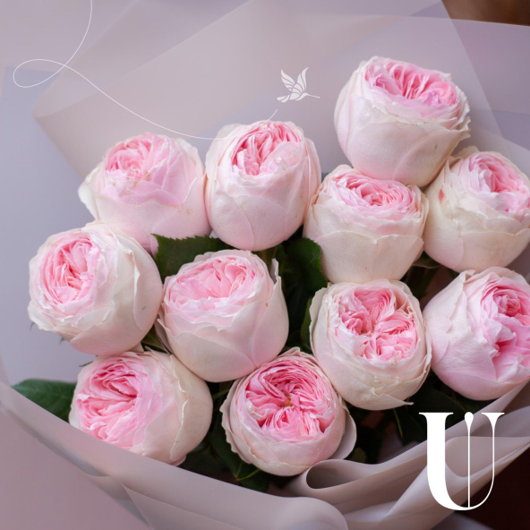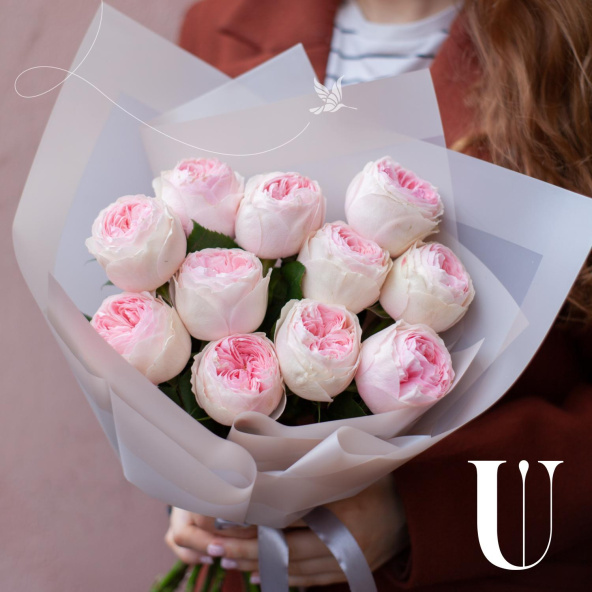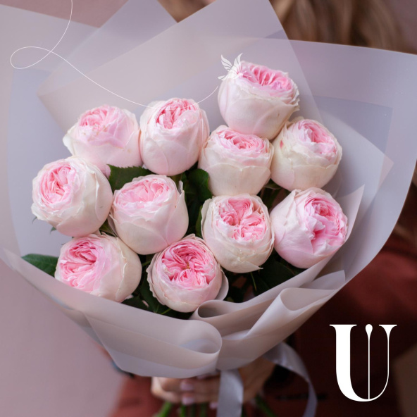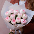 Монобукет из 11 пионовидных роз Кахала в упаковке