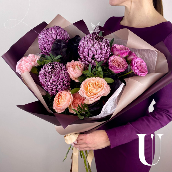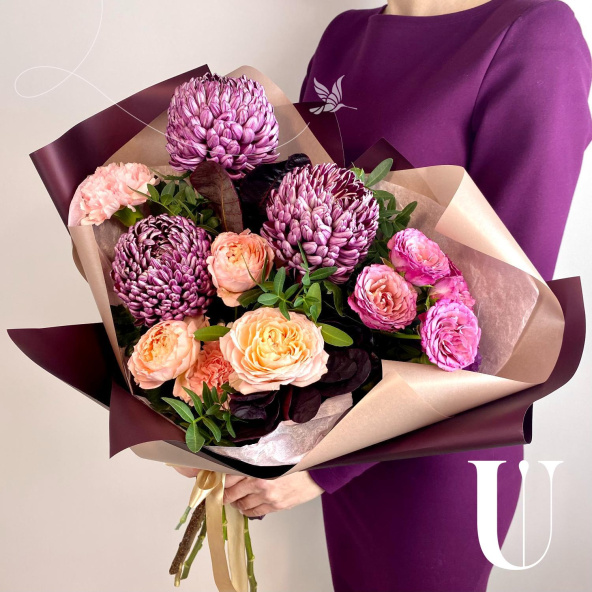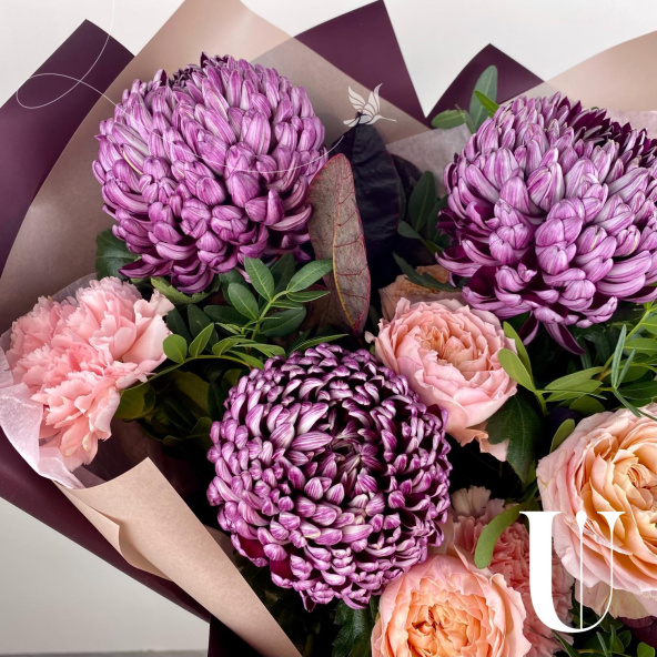 - Хризантема фиолетовая с белой каемкой - 3 шт