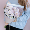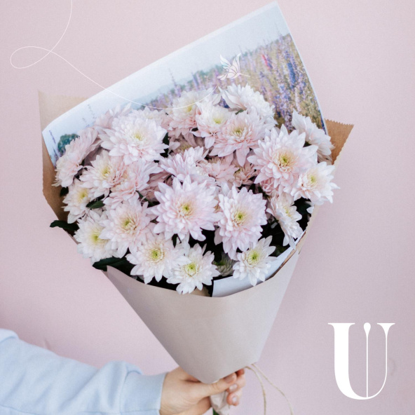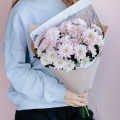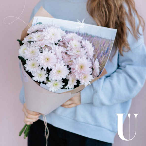Монобукет из белых кустовых хризантем в дизайнерской упаковке