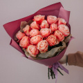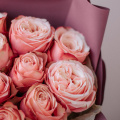 Букет из нежно-розовых кустовых пионовидных роз в упаковке