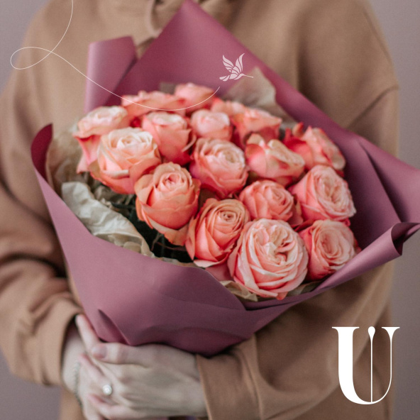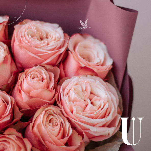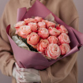 Монобукет из 11 пионовидных роз Кахала в упаковке