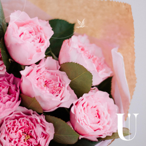 Букет из 7 пионовидных кустовых роз сорта Сильва Пинк