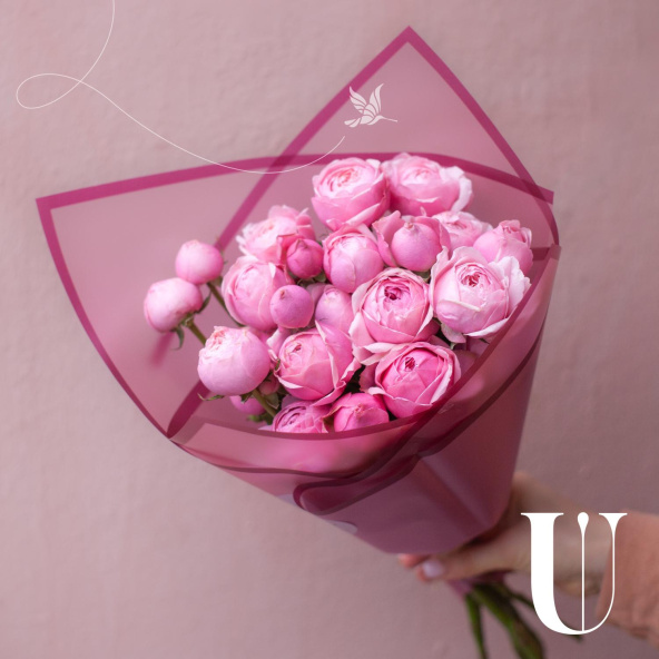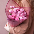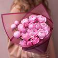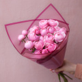 Монобукет из пионовидных роз Кахала и лимониума в нежной упаковке