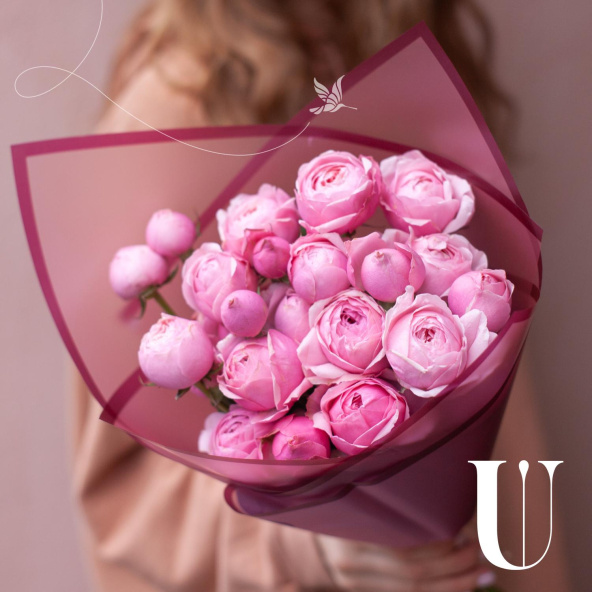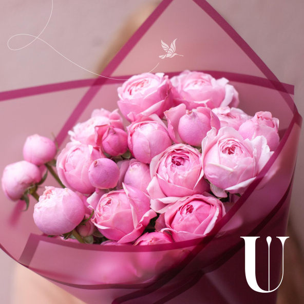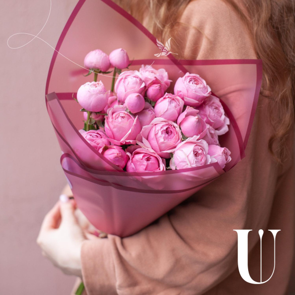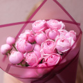 Букет из роз Пинк Охара и малиновых роз в дизайнерской упаковке