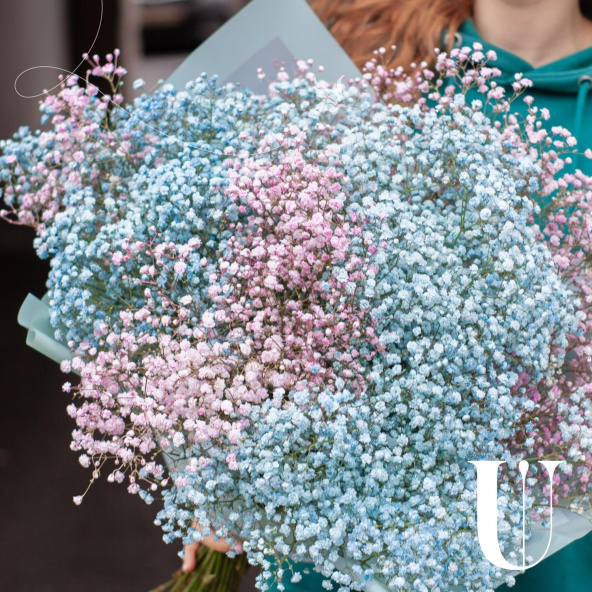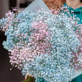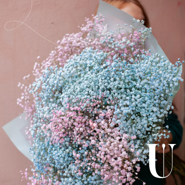 Букет из белых роз и лимониума в дизайнерской упаковке