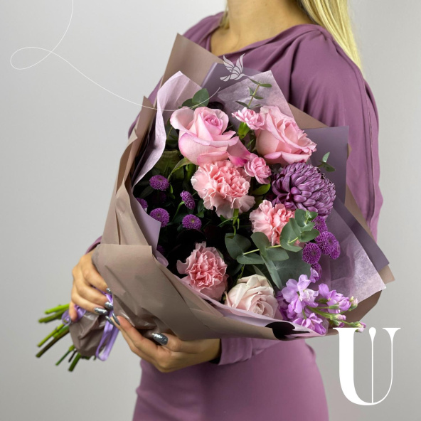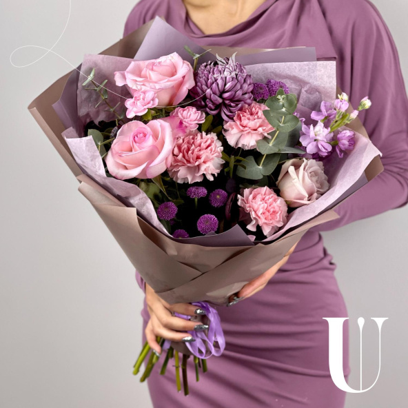 - Хризантема фиолетовая с белой каемкой - 1 шт