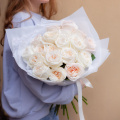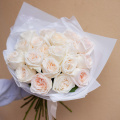 Стильный монобукет из 25 белых роз сорта Мондиаль