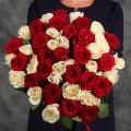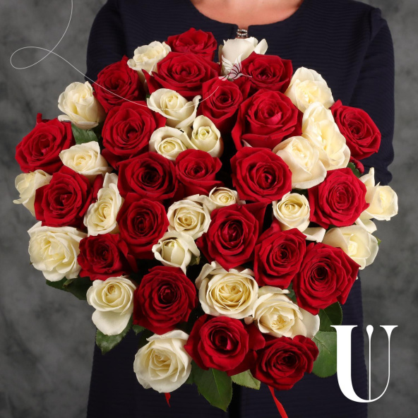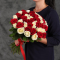Монобукет из белых роз сорта Кэндл Лайт в матовой пленке