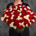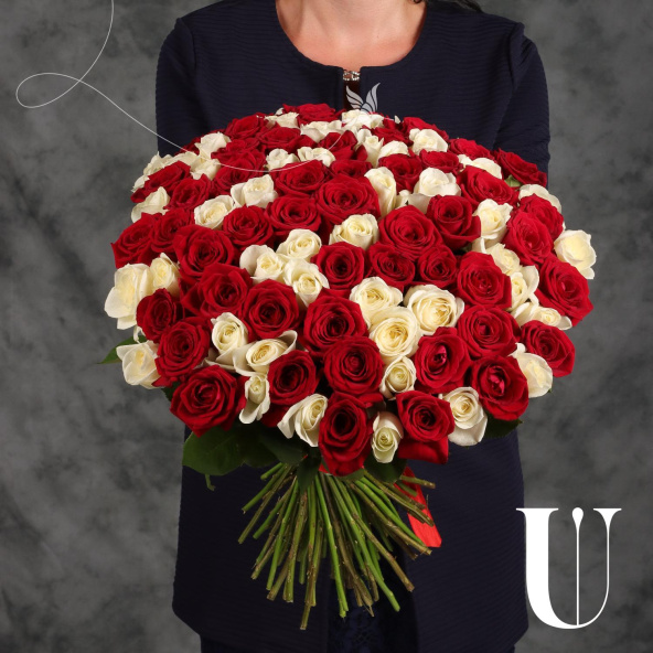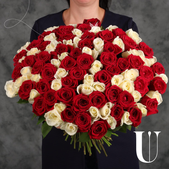 Букет из кустовых пионовидных роз микс в серой упаковке