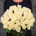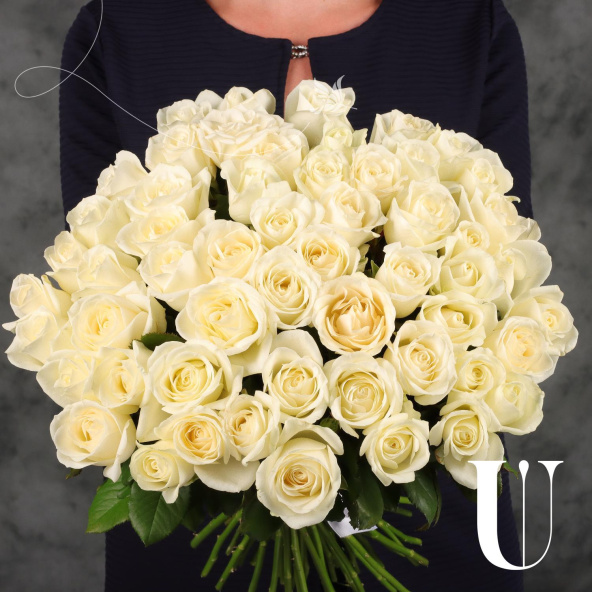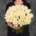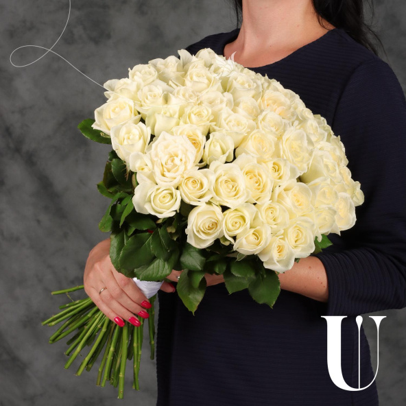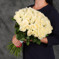 Стильный монобукет из 25 белых роз сорта Мондиаль