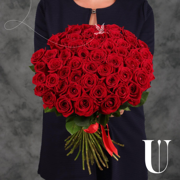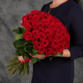 Монобукет из 15 розовых пионовидных роз в дизайнерской упаковке