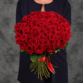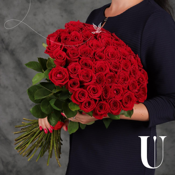 Стильный монобукет из 25 белых роз сорта Мондиаль