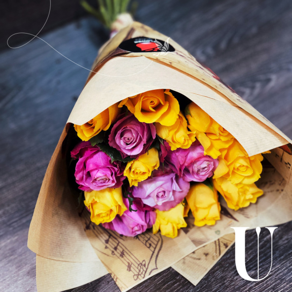 Монобукет из 15 роз. Оформлено крафтовой упаковкой