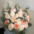 Микс из 21 пионовидной розы с веточками эвкалипта.
