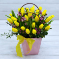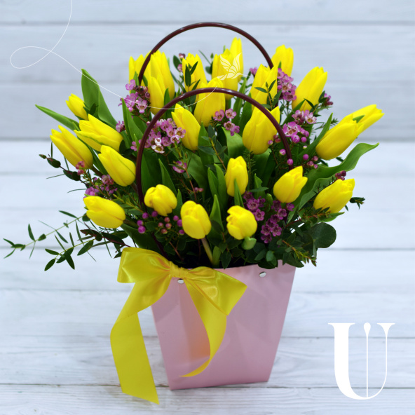 Монобукет из 13 белых тюльпанов в белой дизайнерской упаковке