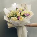 Монобукет из пионовидных роз сорта Шиммер в стильной упаковке