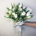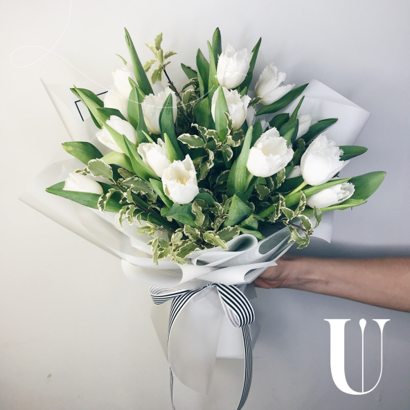 Стильный белый букет из роз Вайт Охара в дизайнерской упаковке