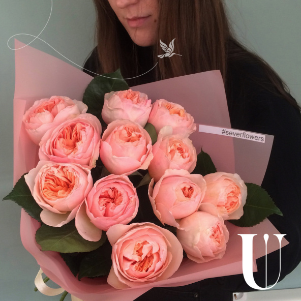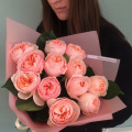 Букет из 11 пионовидных английских роз в лаконичной упаковке.