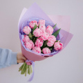 Монобукет из розовых кустовых пионовидных роз в дизайнерской упаковке
