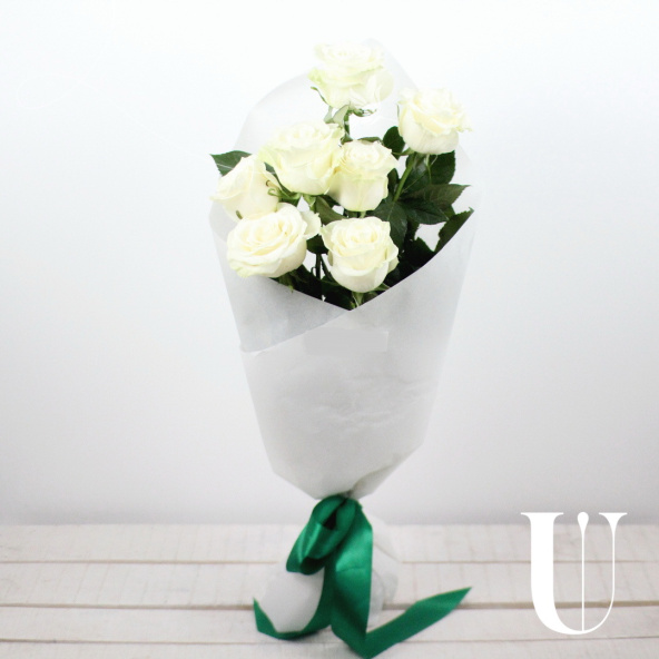 Белые розы Аваланш Россия 60 см. - 7 шт