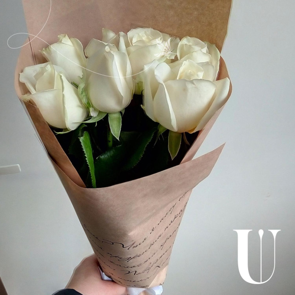 Белые розы Аваланш Россия 60 см. - 7 шт