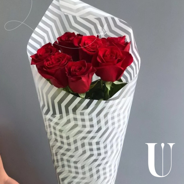 Красные розы Гран-При 60 см. Россия - 7 шт