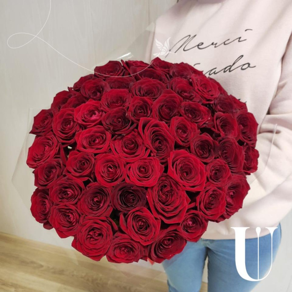 Красная роза Гран-При 60 см. Россия - 55 шт