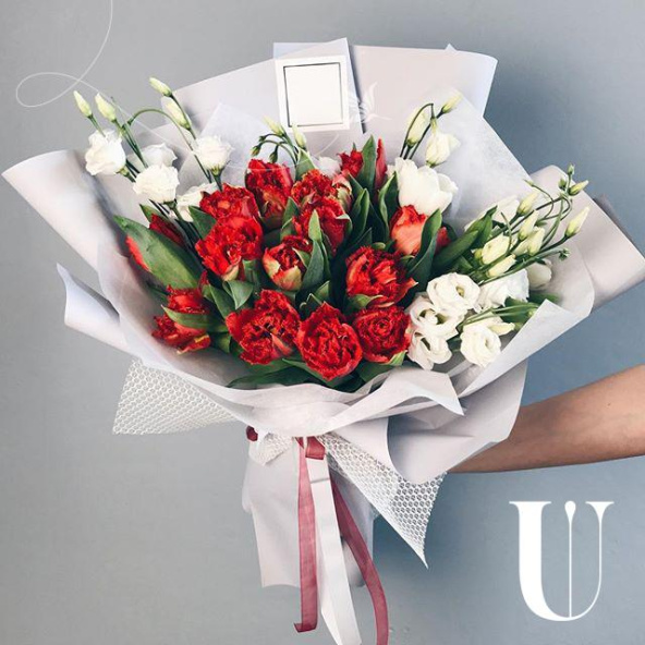 Монобукет из 13 пионовидных тюльпанов в упаковке