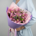 Монобукет из пионовидных роз Кахала и лимониума в нежной упаковке