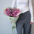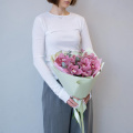 Монобукет из розовых кустовых пионовидных роз в дизайнерской упаковке