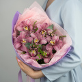 Нежная композиция из пионовидных роз в дизайнерской упаковке